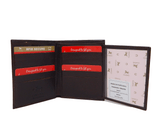 Portefeuille avec un compartiment pour les billets, une fenêtre de présentation, un compartiment ouvert et suffisamment d'espace pour quinze cartes de crédit. Technologie de blocage RFID.