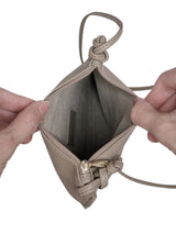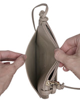 Cet élégant sac bandoulière fin présente un design minimaliste rehaussé de détails noués sur les côtés et de l'emblème signature. Compact et polyvalent, il est idéal pour transporter vos essentiels tout en gardant les mains libres.